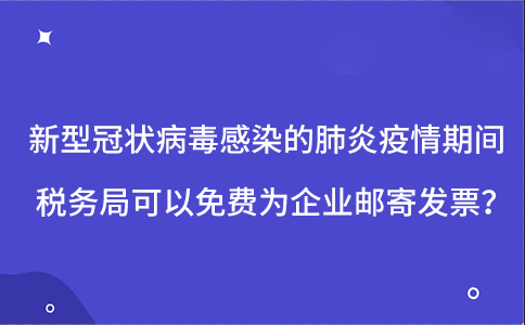 新型冠状病毒感染的肺炎疫情期间税务局可以免费为企业邮寄发票?老师老师我听别的学员说,在疫情期间企业不方便去税务局,领不了发票没关系的,因为税务局可以免费给企业邮寄,这个是真的吗?老师好像也听说了,但是真的是这样吗?下面大家就和小编一起来详细了解一下吧。