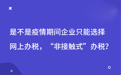 是不是疫情期间企业只能选择网上办税,“非接触式”办税?由于新型冠状病毒感染的肺炎疫情患者人数在不断的增加,因此国家号召大家尽量不要出门,实在要出门的话一定要戴口罩,因为此病毒有人传人的特性,那企业如果想办理相关税务事项是不是也只能通过网上办理,选择“非接触式”办税的方式呢?下面我们就一起来看看吧。